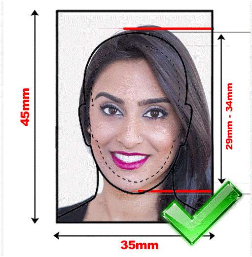 Two recent passport-size coloured photographs with matte or semi-matte finish, 80% face coverage, white background and without border (Size: 35mm x 45mm) Please note that people who live in Chennai will have to provide photographs with different specifications:Two recent passport size coloured photographs with glossy finish, 80% face coverage, white background and without border (Size: 35mm x 45mm) Please note: Photograph should not be more than 3 months old, scanned / stapled and should not be used in any of the previous visas.