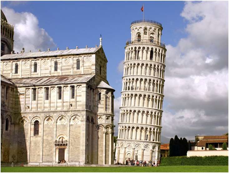 The Leaning Tower of Pisa is actually just one of many attractions in the city of Pisa, but its fame, gained from its flaw, is world renown. Work began on the tower in the 1100s, and the sinking, which led to the lean, began by the time the tower reached the third story. Prior to restoration work in the 1990s, it was predicted to topple over by the year 2000. Today, visitors can climb up the stairs of the tower for a fabulous view over the city.