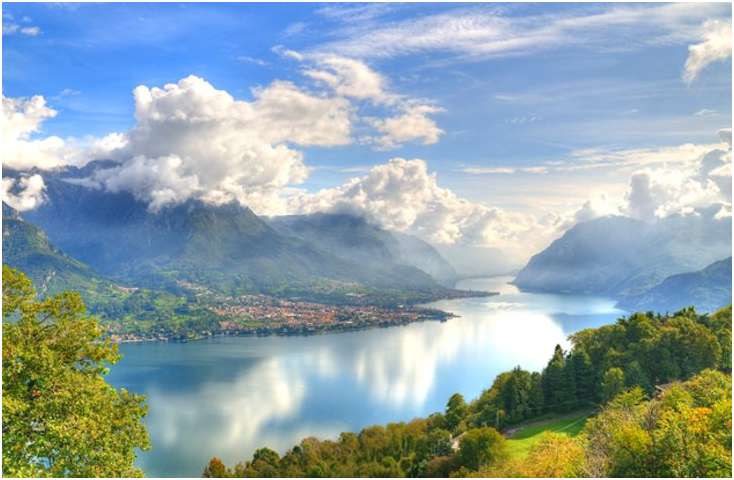 Lake Como is one of Italy's most scenic areas, surrounded by mountains and lined by small picturesque towns. A haunt of the wealthy since Roman times, the lake has many opulent villas and palaces along its wooded shores, many of them surrounded by gardens that are open to the public. The mild climate that makes the lake shore ideal for gardens is also a draw for tourists, with characteristics similar to that of the Mediterranean. Along with the resort towns around the lake, there's an 11th-century abbey.