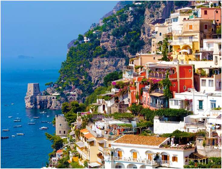 The Amalfi Coast, a UNESCO World Heritage Site, is a stunning stretch of coastline along the Sorrentine Peninsula, south of Naples and Sorrento. Hillside towns are built precariously along the steep mountainsides that cascade down to the sea. The main towns along here are Positano and Amalfi, with its colorfully domed cathedral. You can tour the coast by road or hop between towns by boat for different perspectives of the dramatic and almost vertical shore.