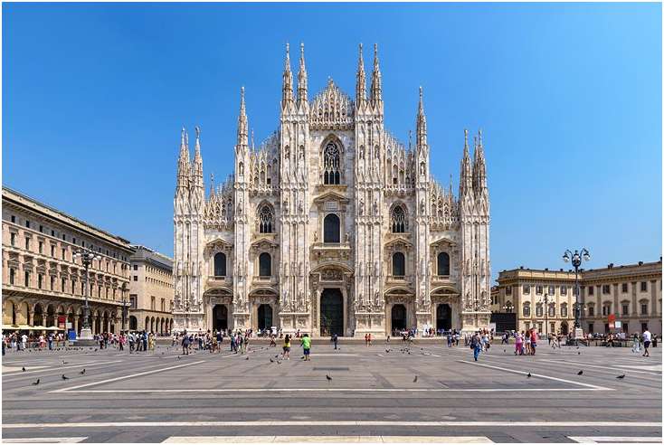 Milan's magnificent Cathedral of Santa Maria Nascente, "Il Duomo" to the locals, is one of the world's largest churches and probably the best example anywhere of the flamboyant Gothic style. Its statue-studded façade (the exterior of the cathedral has a grand total of 2,245 marble statues) and the 135 carved stone pinnacles that crown its roof make quite a first impression, which is reinforced as you step inside.