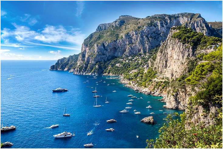 The Blue Grotto is one of the most visited spots in all Italy, but there are other reasons for taking the short boat ride from Naples, Sorrento or the Amalfi Coast to the fabled Isle of Capri. The steep rocky island juts from an intensely blue sea, its craggy cliffs softened by green pines and tropical plants. The Blue Grotto is only one of the sea caves that cut its cliffs, and the best way to see these, along with the three signature rocks off the south coast known as the Faraglioni, is on a boat tour around the island. Several villas and gardens are open to tourists, and walking trails invite exploration. From almost anywhere on the island you can be certain of a good view.